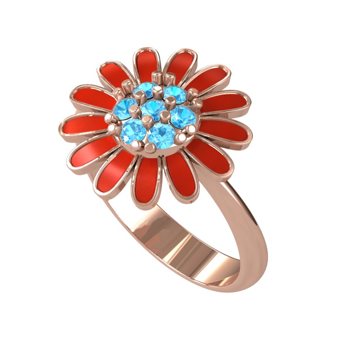 Akuamarin 925 ayar rose altın kaplama gümüş yüzük (Kırmızı mineli)