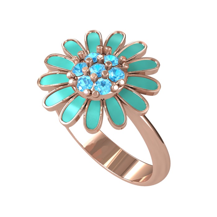 Akuamarin 925 ayar rose altın kaplama gümüş yüzük (Turkuaz mineli)