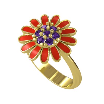 Ametist 14 ayar altın yüzük (Kırmızı mineli)