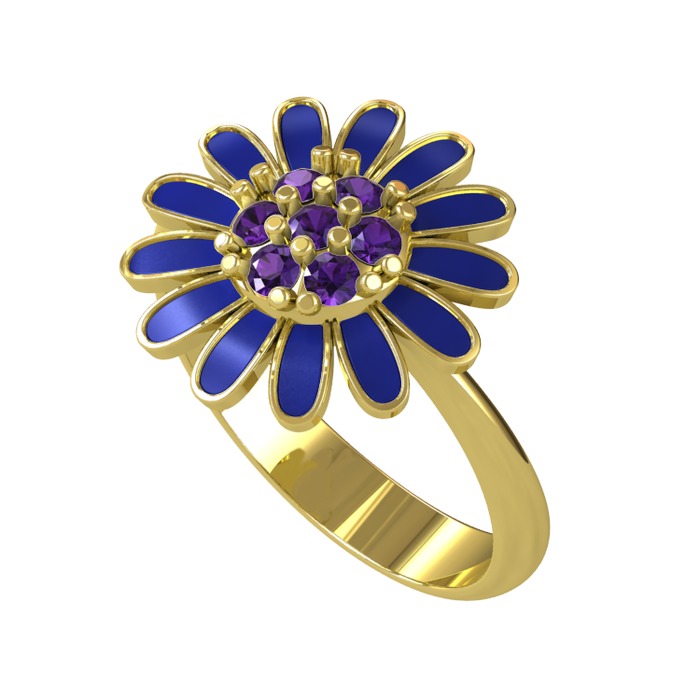 Ametist 14 ayar altın yüzük (Lacivert mineli)