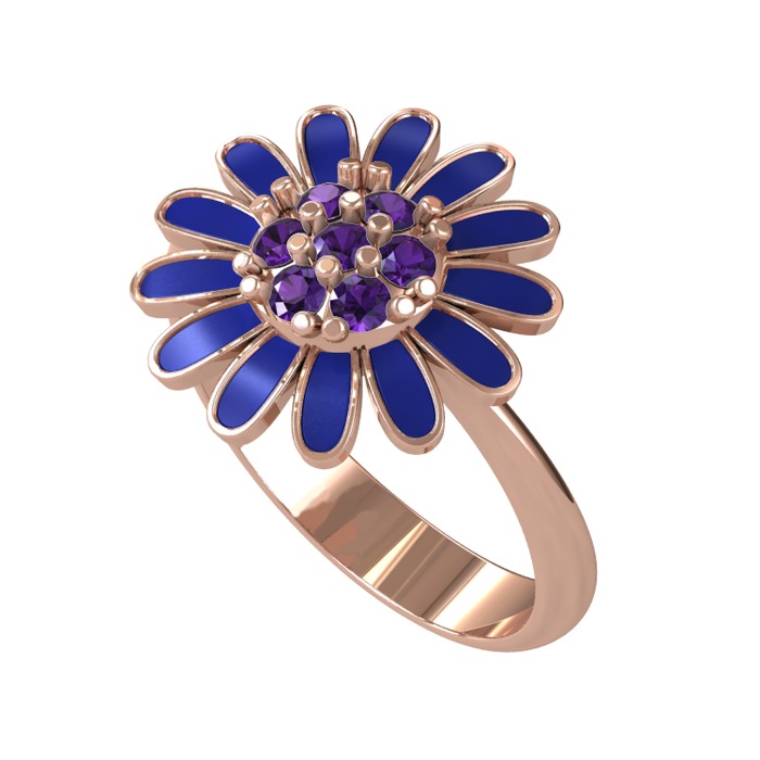 Ametist 14 ayar rose altın yüzük (Lacivert mineli)