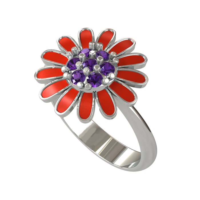 Ametist 8 ayar beyaz altın yüzük (Kırmızı mineli)