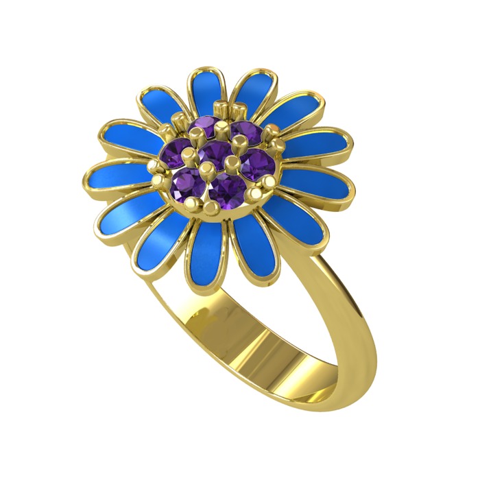 Ametist 925 ayar altın kaplama gümüş yüzük (Mavi mineli)