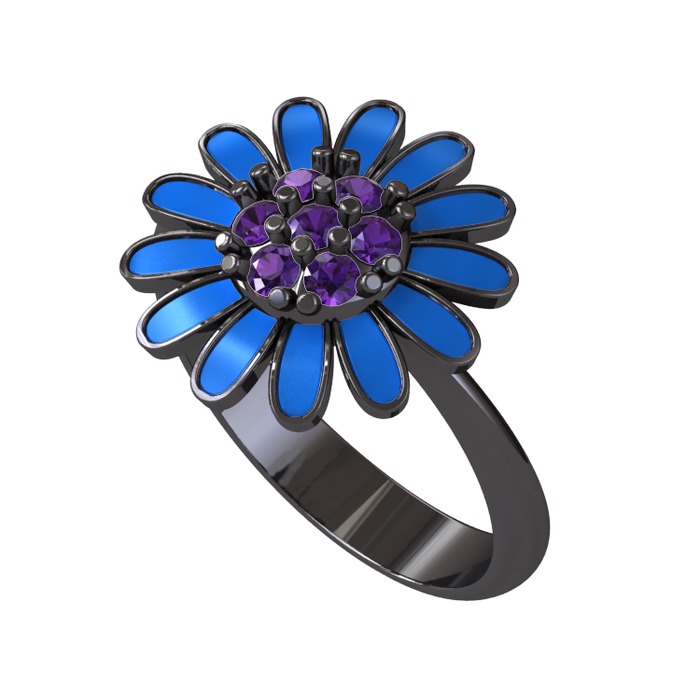 Ametist 925 ayar siyah rodyum kaplama gümüş yüzük (Mavi mineli)
