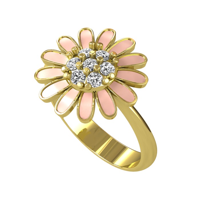 Beyaz zirkon 18 ayar altın yüzük (Pastel pembe mineli)