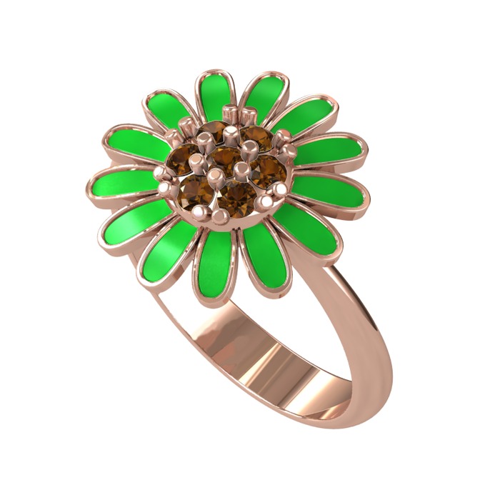 Dumanlı kuvars 18 ayar rose altın yüzük (Yeşil mineli)