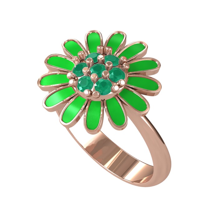 Kök zümrüt 14 ayar rose altın yüzük (Yeşil mineli)