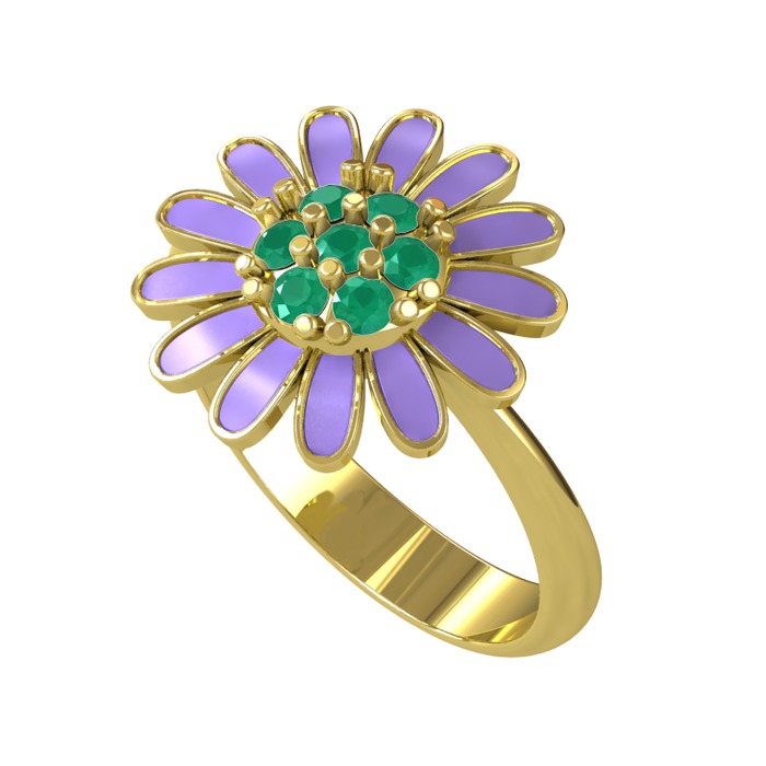 Kök zümrüt 18 ayar altın yüzük (Menekşe mineli)