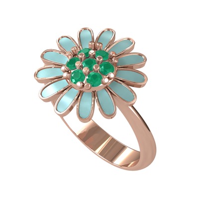 Kök zümrüt 18 ayar rose altın yüzük (Pastel mavi mineli)