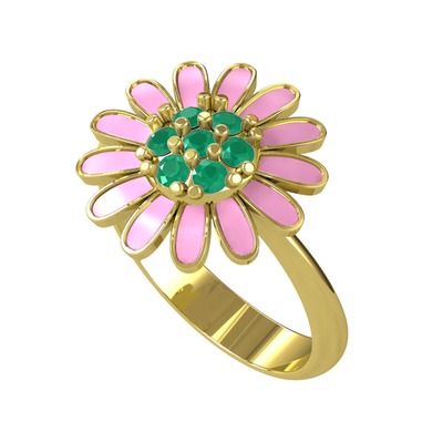 Kök zümrüt 8 ayar altın yüzük (Pembe mineli)
