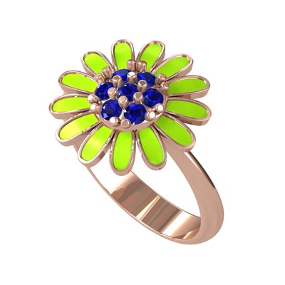 Lab safir 8 ayar rose altın yüzük (Neon yeşil mineli)