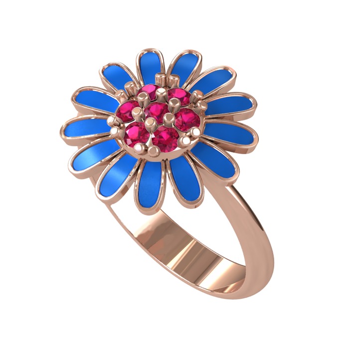 Rodolit garnet 18 ayar rose altın yüzük (Mavi mineli)