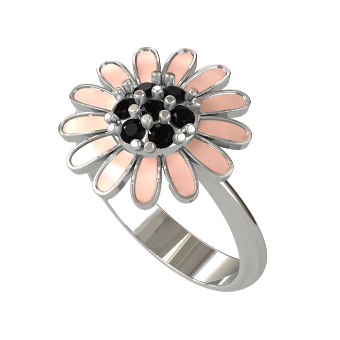 Siyah zirkon 925 ayar gümüş yüzük (Pastel pembe mineli)