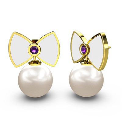 Inci ve ametist 8 ayar altın küpe (Beyaz mineli)