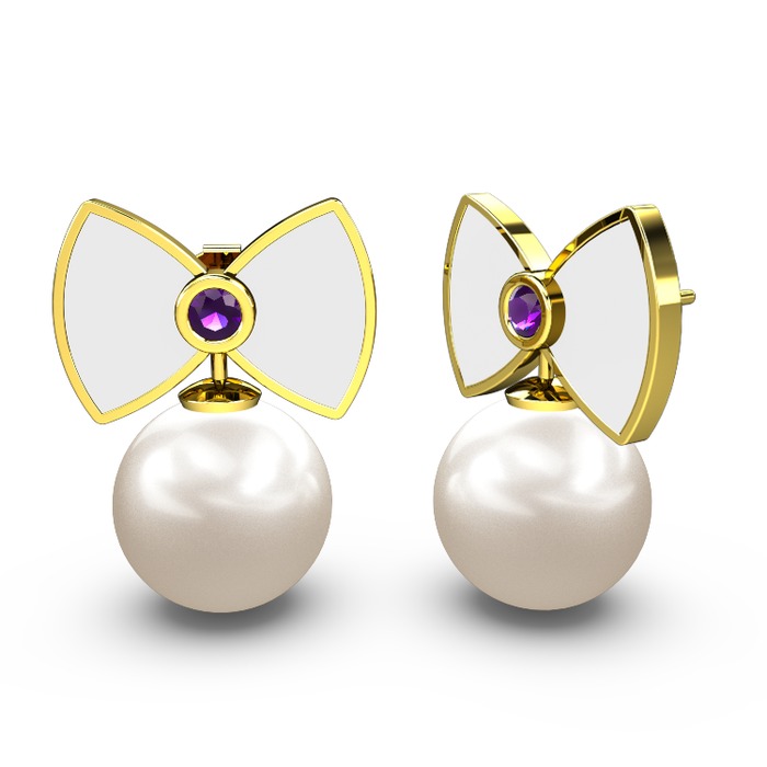 Inci ve ametist 925 ayar altın kaplama gümüş küpe (Beyaz mineli)