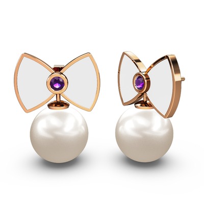 Inci ve ametist 925 ayar rose altın kaplama gümüş küpe (Beyaz mineli)