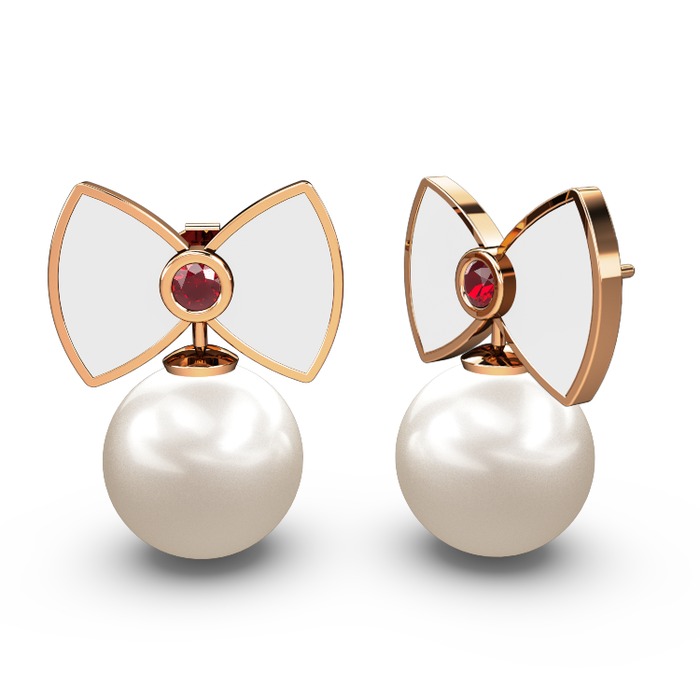 Inci ve garnet 18 ayar rose altın küpe (Beyaz mineli)