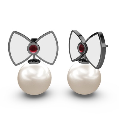 Inci ve kök yakut 925 ayar siyah rodyum kaplama gümüş küpe (Beyaz mineli)