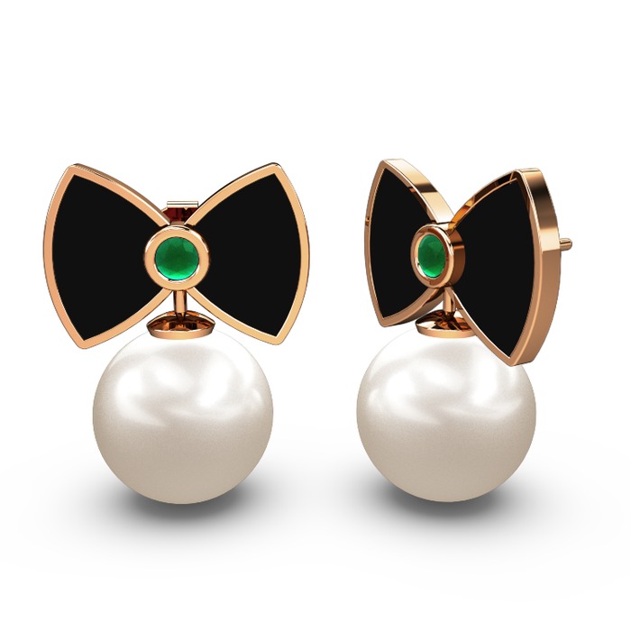Inci ve kök zümrüt 8 ayar rose altın küpe (Siyah mineli)