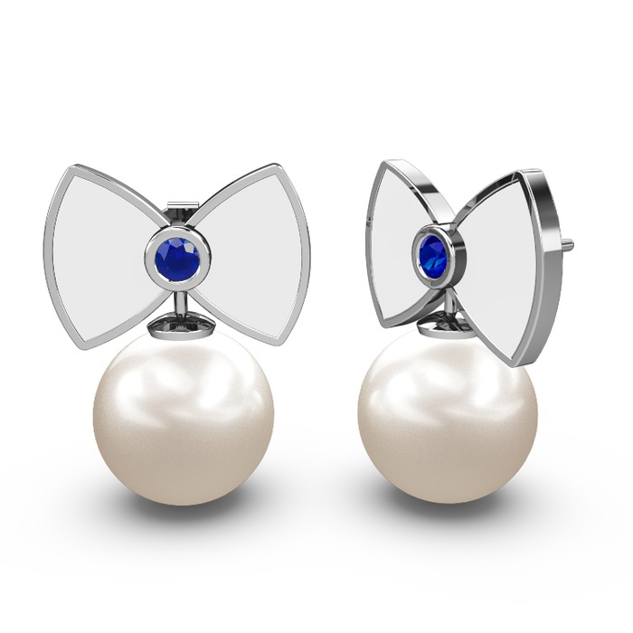 Inci ve lab safir 18 ayar beyaz altın küpe (Beyaz mineli)