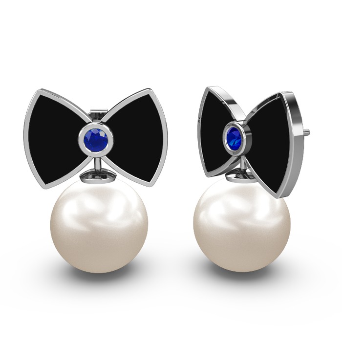 Inci ve lab safir 8 ayar beyaz altın küpe (Siyah mineli)