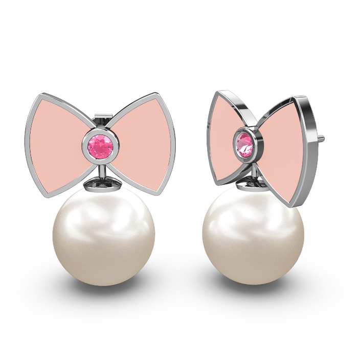 Inci ve pembe kuvars 18 ayar beyaz altın küpe (Pastel pembe mineli)