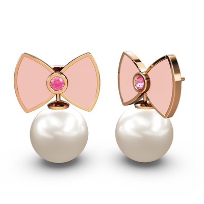 Inci ve pembe kuvars 18 ayar rose altın küpe (Pastel pembe mineli)