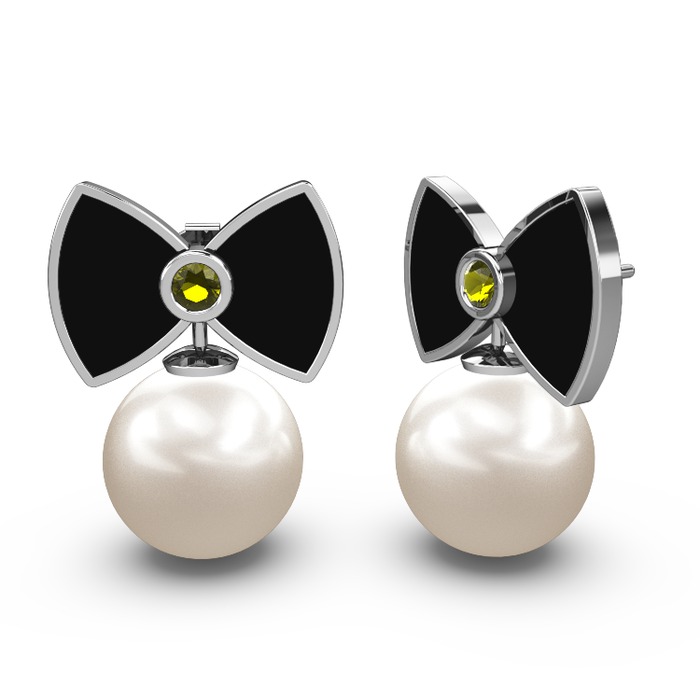Inci ve peridot 14 ayar beyaz altın küpe (Siyah mineli)