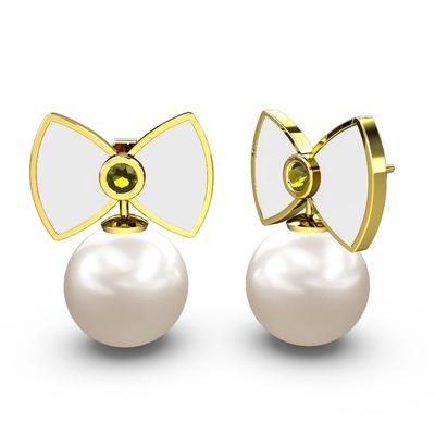 Inci ve peridot 8 ayar altın küpe (Beyaz mineli)