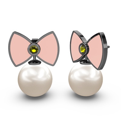 Inci ve peridot 925 ayar siyah rodyum kaplama gümüş küpe (Pastel pembe mineli)