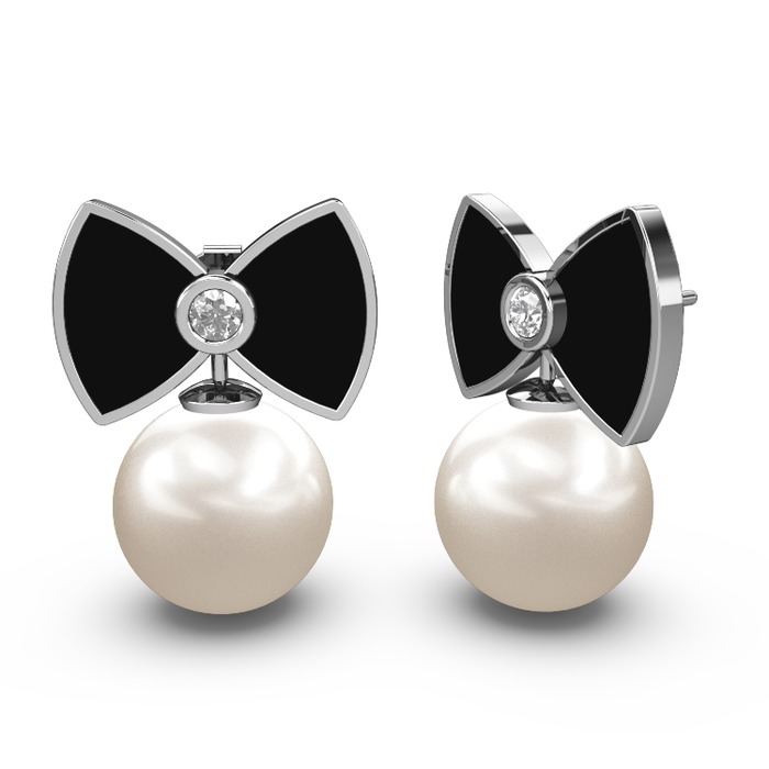 Inci ve pırlanta 14 ayar beyaz altın küpe (0.12 karat, siyah mineli)