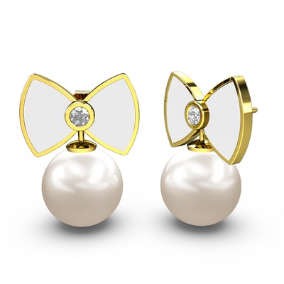 Inci ve pırlanta 8 ayar altın küpe (0.12 karat, beyaz mineli)
