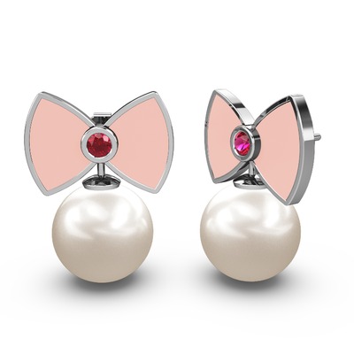 Inci ve rodolit garnet 18 ayar beyaz altın küpe (Pastel pembe mineli)