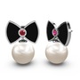 Inci ve rodolit garnet 8 ayar beyaz altın küpe (Siyah mineli)