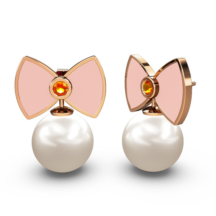 Inci ve sitrin 14 ayar rose altın küpe (Pastel pembe mineli)