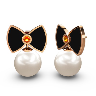 Inci ve sitrin 14 ayar rose altın küpe (Siyah mineli)