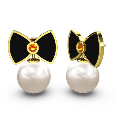 Inci ve sitrin 8 ayar altın küpe (Siyah mineli)