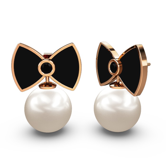 Inci ve siyah zirkon 18 ayar rose altın küpe (Siyah mineli)