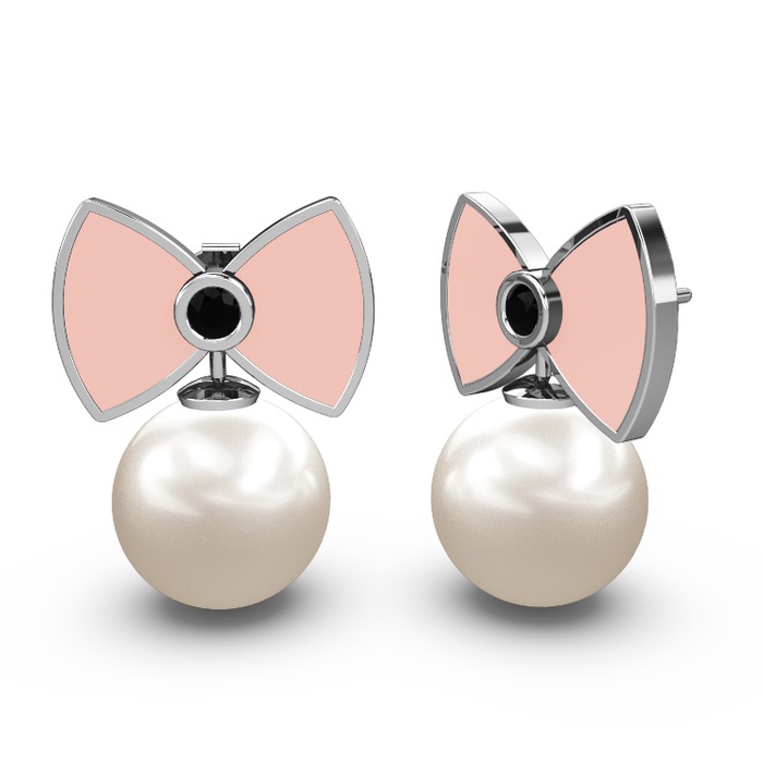 Inci ve siyah zirkon 8 ayar beyaz altın küpe (Pastel pembe mineli)