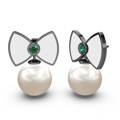 Inci ve yeşil kuvars 925 ayar siyah rodyum kaplama gümüş küpe (Beyaz mineli)