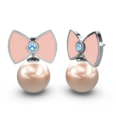 Pembe inci ve akuamarin 18 ayar beyaz altın küpe (Pastel pembe mineli)