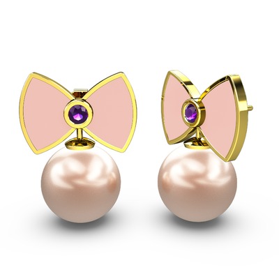 Pembe inci ve ametist 18 ayar altın küpe (Pastel pembe mineli)
