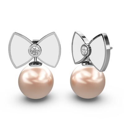 Pembe inci ve beyaz zirkon 18 ayar beyaz altın küpe (Beyaz mineli)