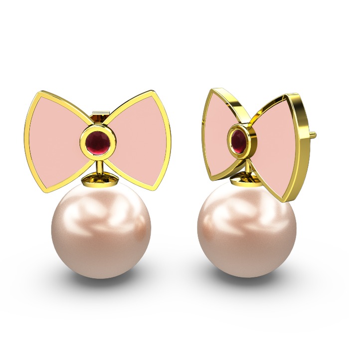 Pembe inci ve kök yakut 18 ayar altın küpe (Pastel pembe mineli)