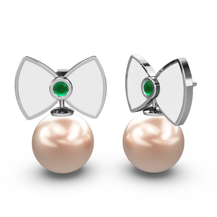 Pembe inci ve kök zümrüt 18 ayar beyaz altın küpe (Beyaz mineli)