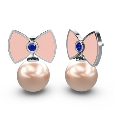 Pembe inci ve lab safir 18 ayar beyaz altın küpe (Pastel pembe mineli)