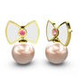 Pembe inci ve pembe kuvars 18 ayar altın küpe (Beyaz mineli)