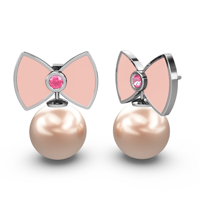 Pembe inci ve pembe kuvars 8 ayar beyaz altın küpe (Pastel pembe mineli)