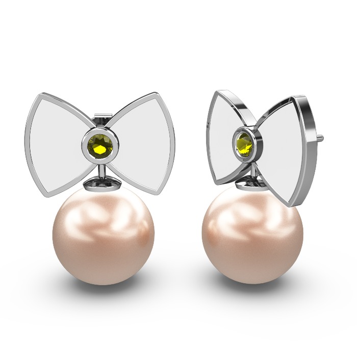 Pembe inci ve peridot 8 ayar beyaz altın küpe (Beyaz mineli)