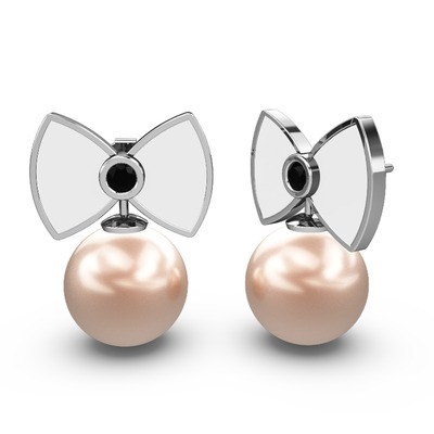 Pembe inci ve siyah zirkon 925 ayar gümüş küpe (Beyaz mineli)